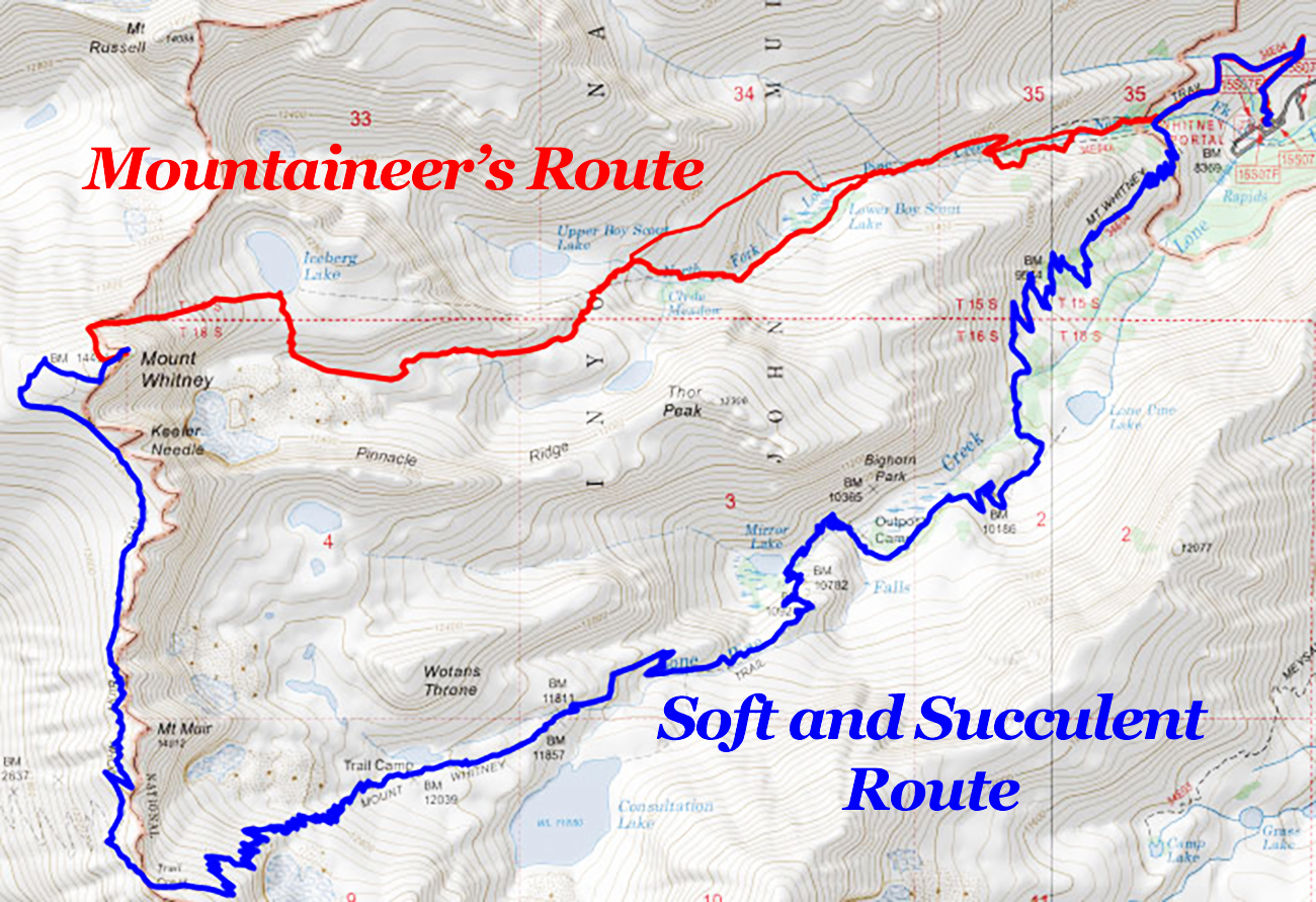Anyways, I typically enjoy fast and relatively unencumbered travel through the mountains, which restricted my plans to be around 20 hours at the maximum. Because I was responsible for driving a few Alpine Club members to the Whitney Portal trailhead, I knew I had to both start and finish there. That meant that if I wanted to go for a ridge linkup, I would have to either push north or south.