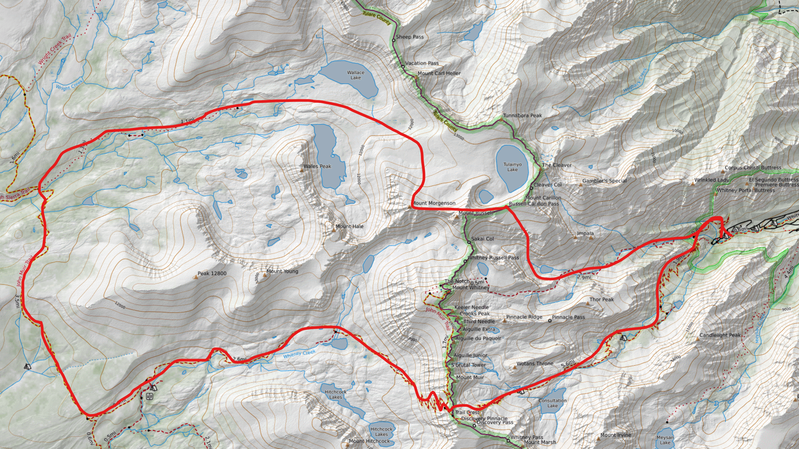 The key was the Wallace Lakes trail, which runs from the PCT to Wallace lake basin. The trail is a unique East-West cut in the eastern Sierra, and opened the door for a cool trail linkup.
