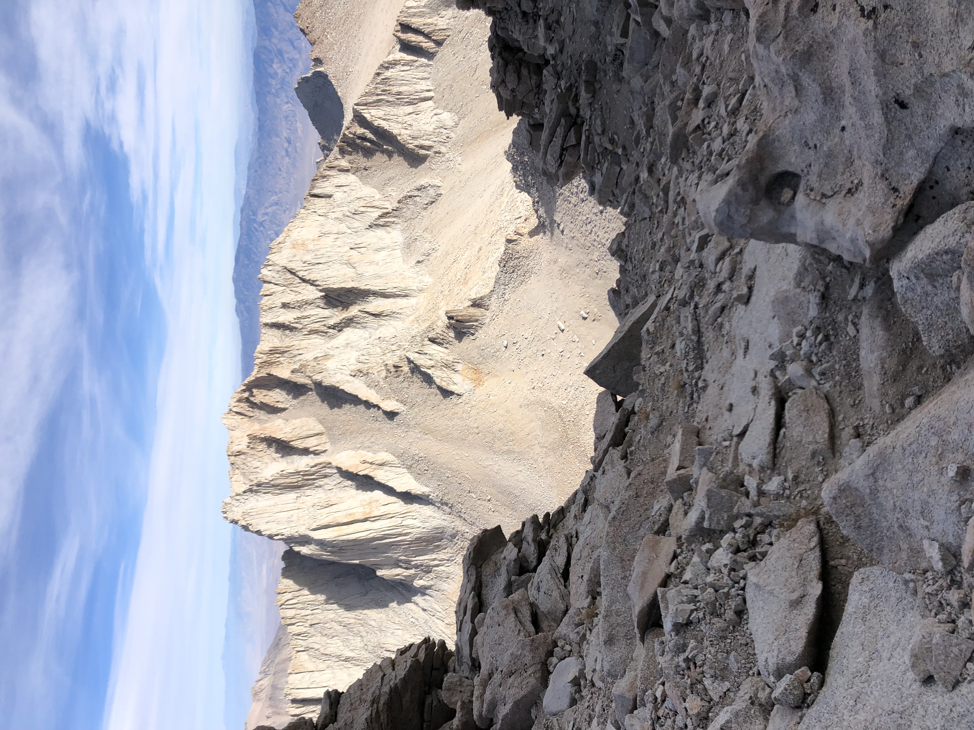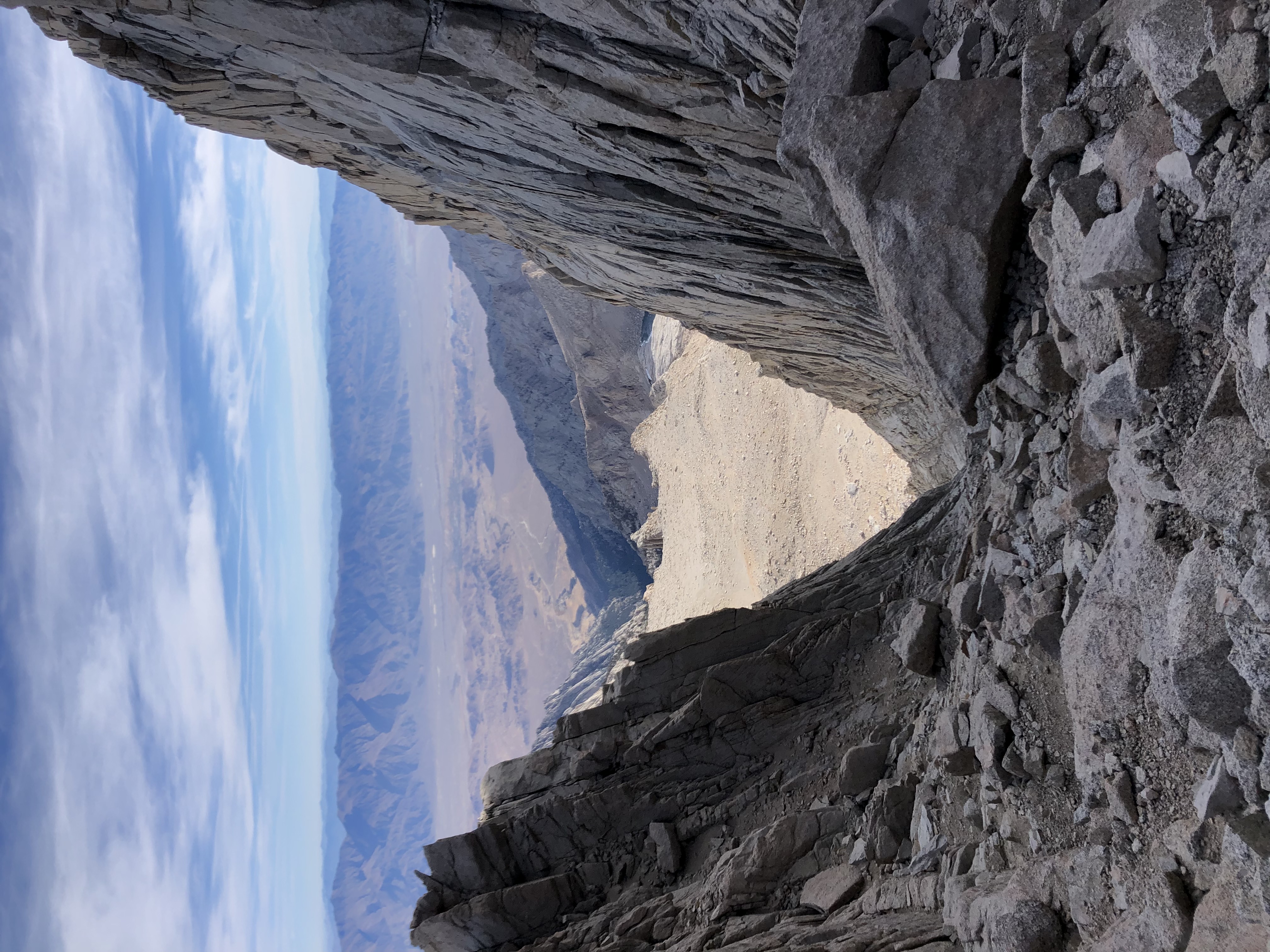I ended up sleeping on the road headed up to Taboose Pass, but the road was rather gnarly, and I couldn’t drive to the trailhead. Moreover, a rain/snow mix the following morning dampered my ambitions, and I made a spontanteous decision to re-route my day towards the Whitney region. After driving the hour to Lone Pine, I rolled into the ranger station at around 10 in the morning. With most Whitney parties starting before the sun, I got some considerable warnings from the ranger as I went to purchase my day use permit! I don’t typically do well when it comes to listening to authority figures, so I continued up to the Whitney portal, beginning my hike up the standard route at around 2 pm. The route was developed in 1904 with the use of mules, which made for efficient travel, and I was even almost able to beat the dark! I was a bit worried about crowds, but some adverse weather meant I was mostly rolling solo. I ended up pushing for both Whitney and Mt. Muir, resulting in the summit of two 14ers and four 13(+)ers during the weekend…which is meaningless, but more on that later.