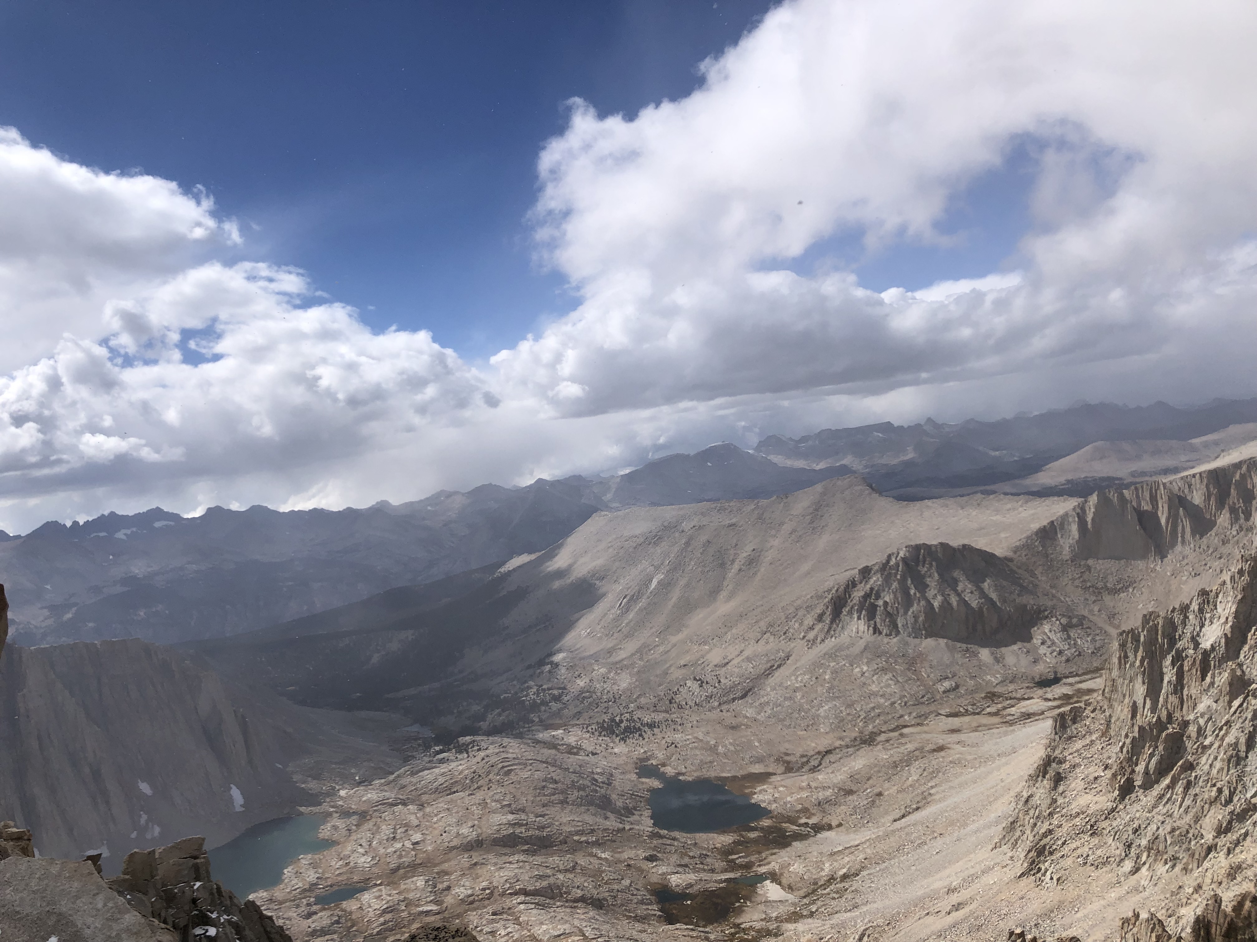 The Whitney buttress is home to one of the best views in the Sierra. This is largely due to the extensive cliffs that lift the Whitney ridge from the eastern slopes. On the west side, the ancient Kern river valley carves the view out to the Kaweah and the greater King’s Canyon. This west side is quite challenging to access, and is rarely traveled with the exception of thru-hikers. One of the methods for accessing this zone is via the JMT, which is one of the more popular thru-hikes in the country, and is often regarded to be one of the best parts of the PCT. The JMT runs from Mt. Whitney and ends in Yosemite valley, traversing into the Whitney creek drainage (which then feeds into the Kern) directly south of Mt. Muir. As such, during my two days on Whitney, the JMT began to accumulate a serious pull.